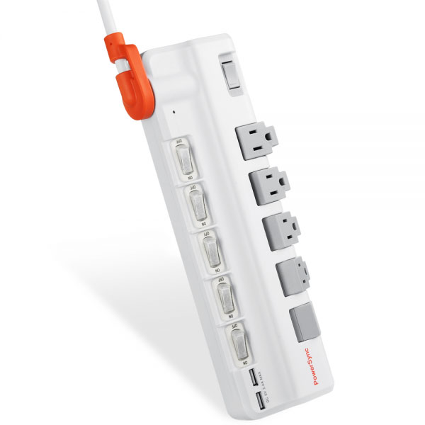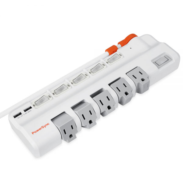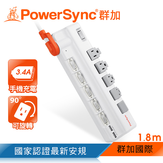 ● 品名:6開5插2埠USB防雷擊抗搖擺旋轉延長線