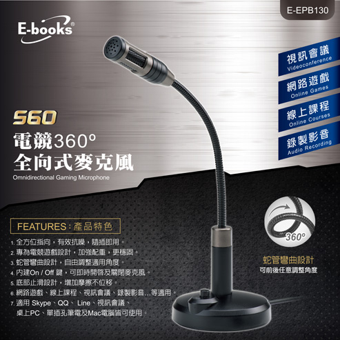 E-books S60 電競360°全向式麥克風 E-EPB130