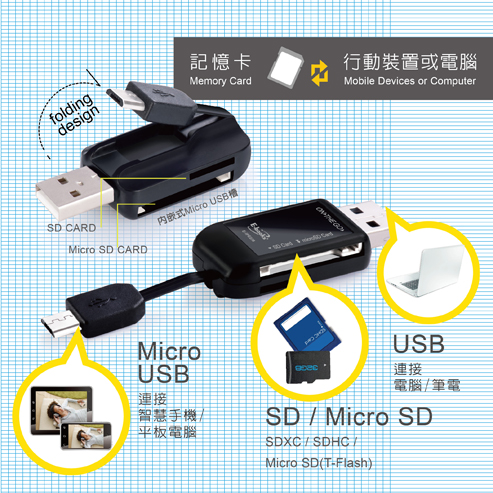 E-booksT21 MicroUSB+USB雙介面OTG讀卡機