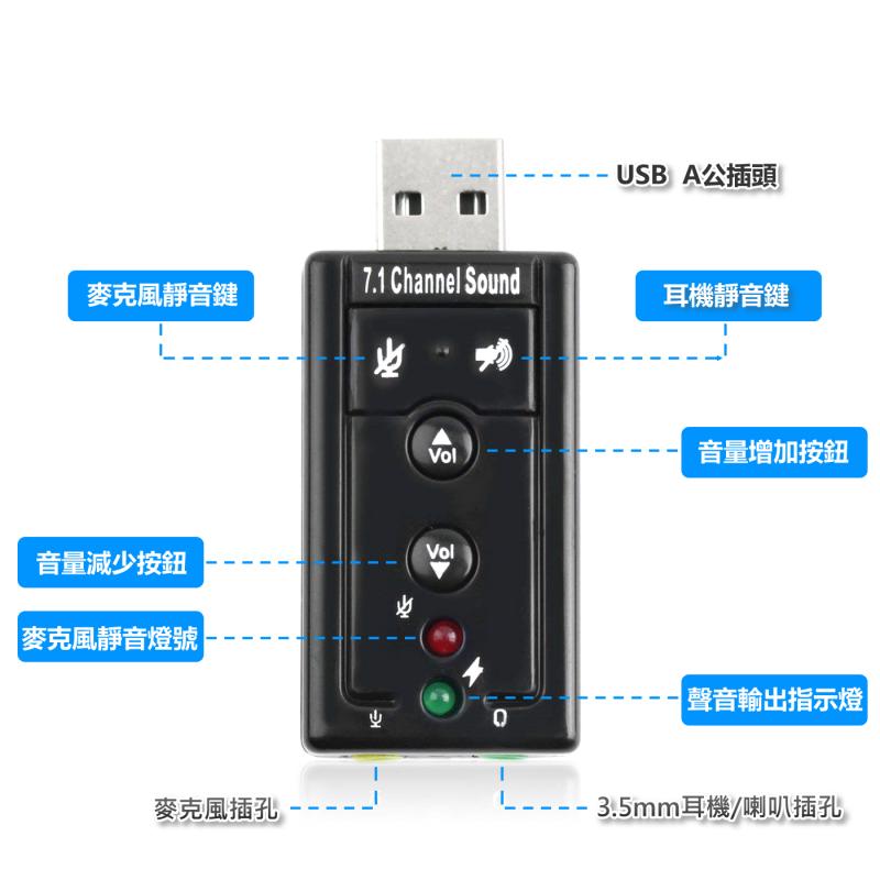 1. 7.1聲道外接式音效卡,虛擬數位7.1聲道環繞3D音效,高品質聲音享受 2. USB 2.0規格隨插即用,可直接控制靜音、調整音量大小以及麥克風啟用或關閉等功能 3. 純數位化音效訊號,不易受電路雜訊與電壓干擾 4. 排除播放端硬體設備與特性差異,由接收端直接進行信號轉譯,降低類比/數位轉換次數,大大減少信號失真 5. 動態式音場調整,支援各類聆聽模式