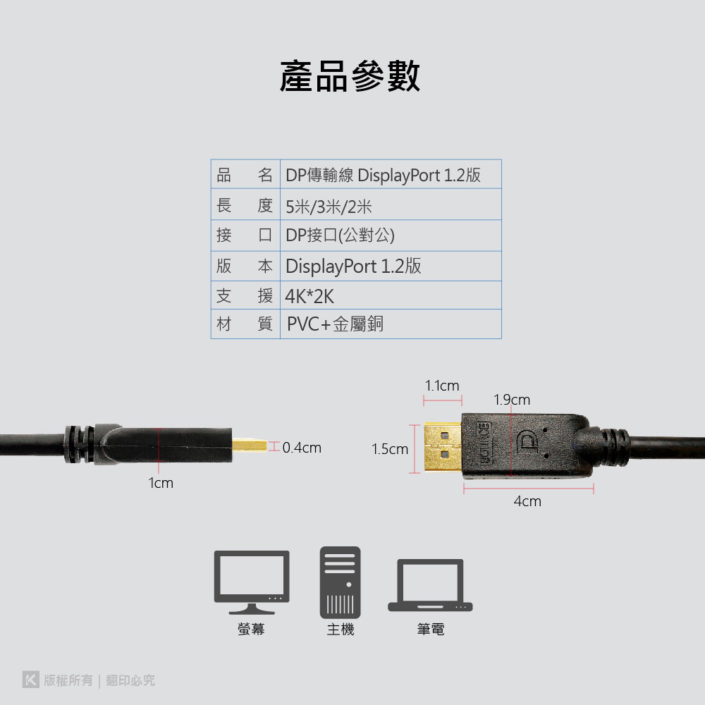 • DP傳輸線 DisplayPort 1.2版 2M