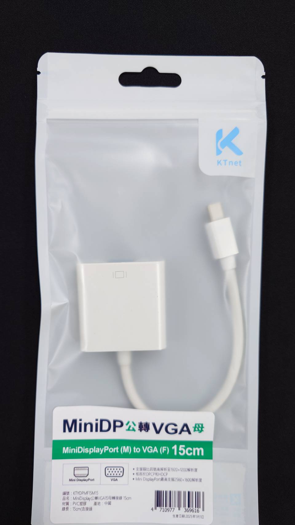 KTNET - mini DisplayPort(公) to VGA(母) adapter cable 轉接線-15cm