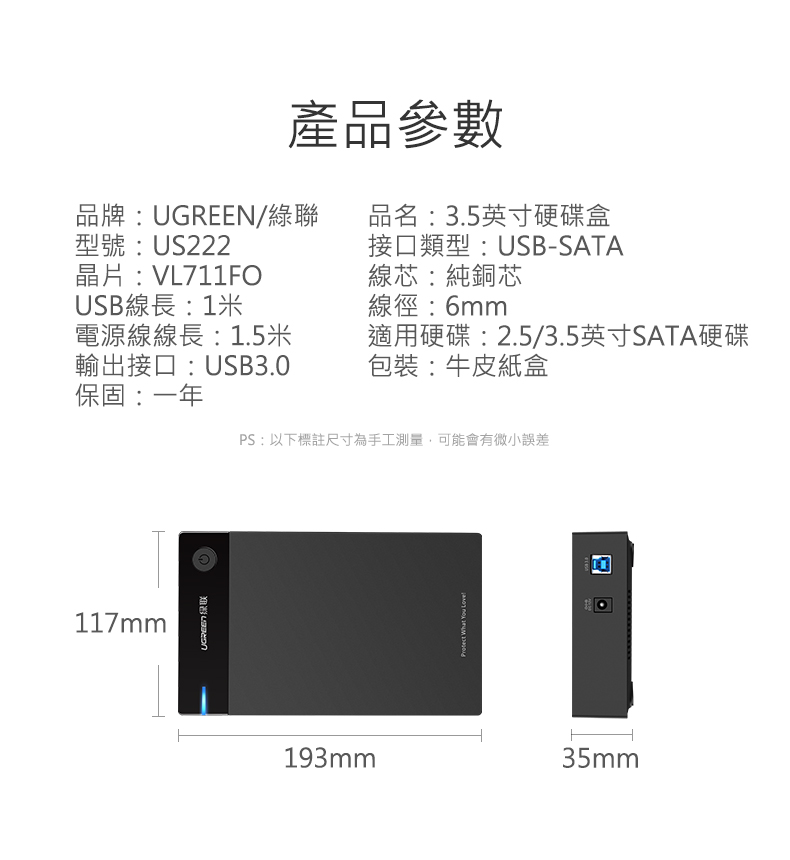 • 綠聯 2.5/3.5硬碟SSD通用外接盒